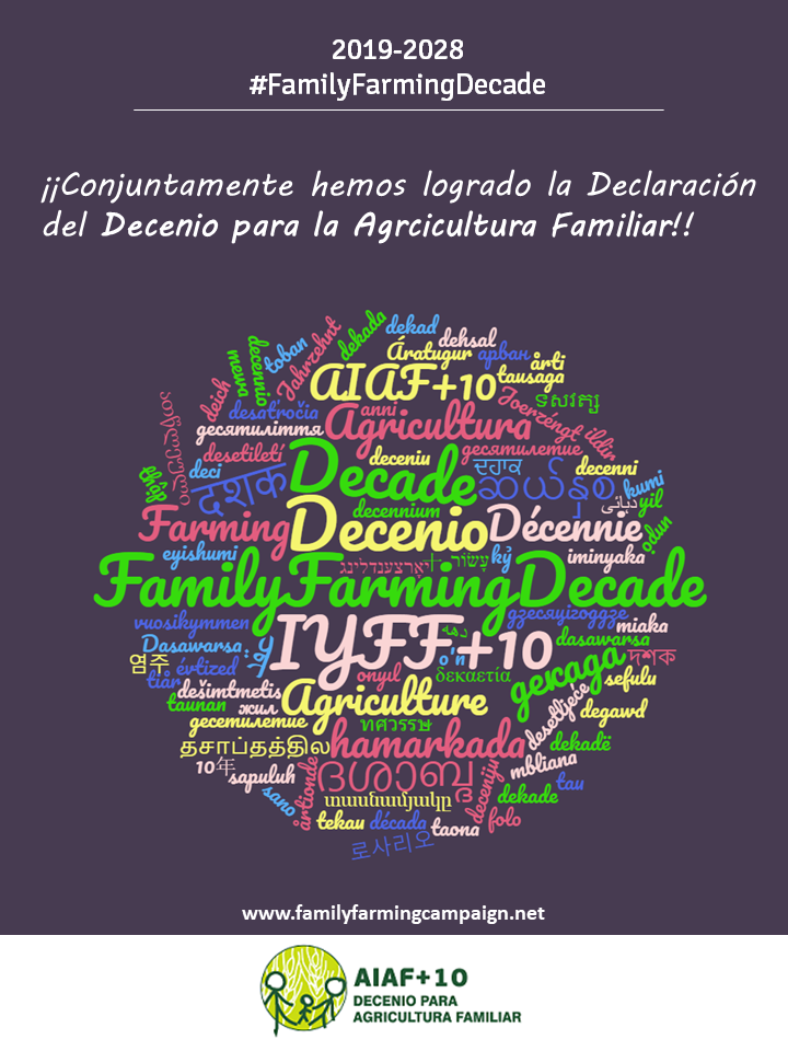 Imagen de la adopción oficial del Decenio para la Agricultura Familiar 2019-2028